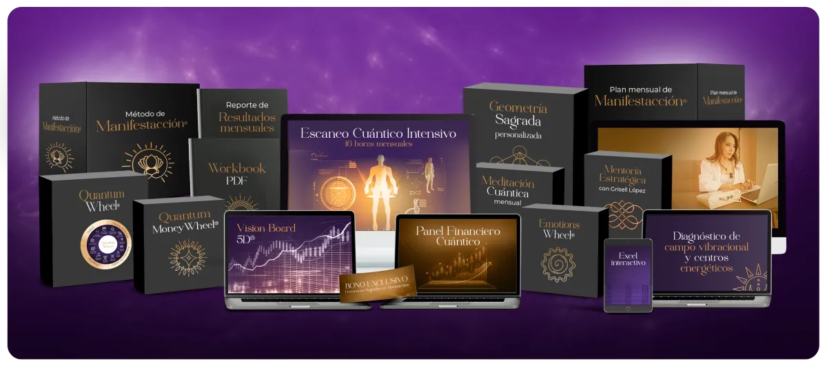 Con el método de ManifestACCION® y la máquina de balance cuántico, medirás y elevarás tu frecuencia, reprogramarás tu subconsciente y diseñarás una estrategia financiera, transformando tu energía en prosperidad real y sostenible.